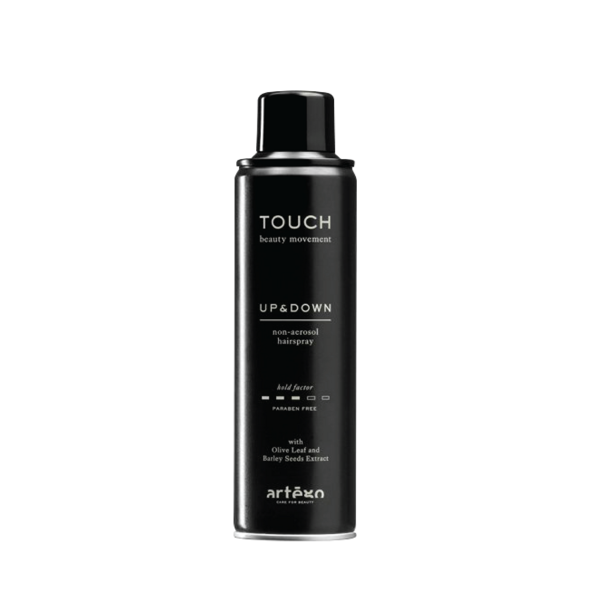 A professional spray with medium hold and humidity resistance, providing volume and shine without adding weight. It can be reshaped after application, leaves no residue even after multiple uses, and is easily removable, with a hold level of 3